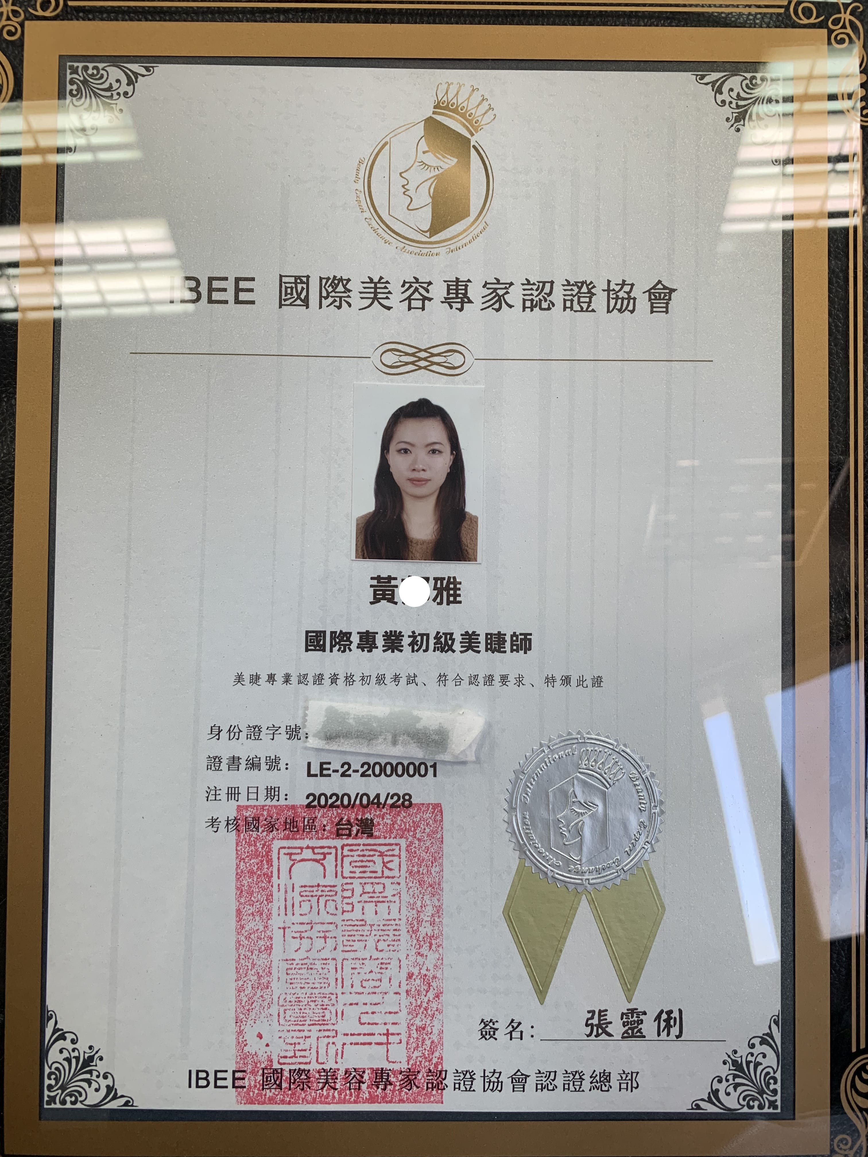 店裡的美睫師、霧眉師都有專業的二級證照,