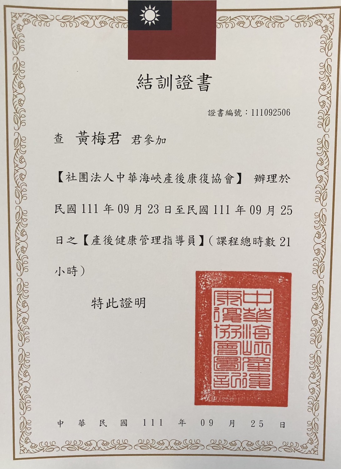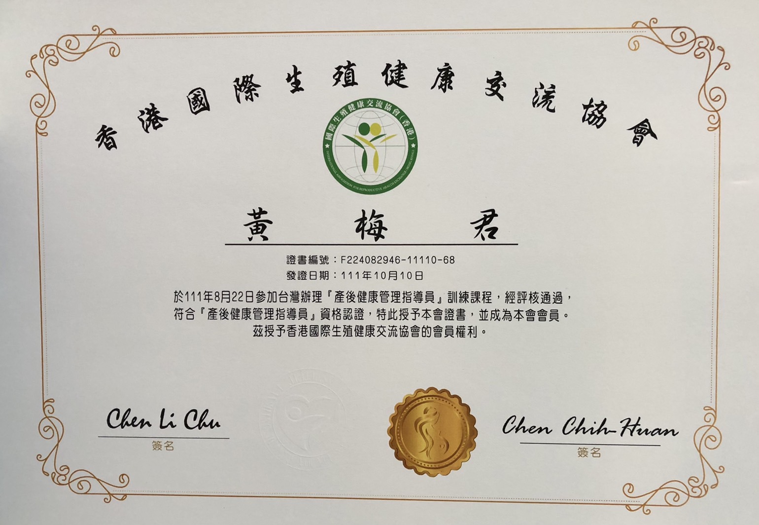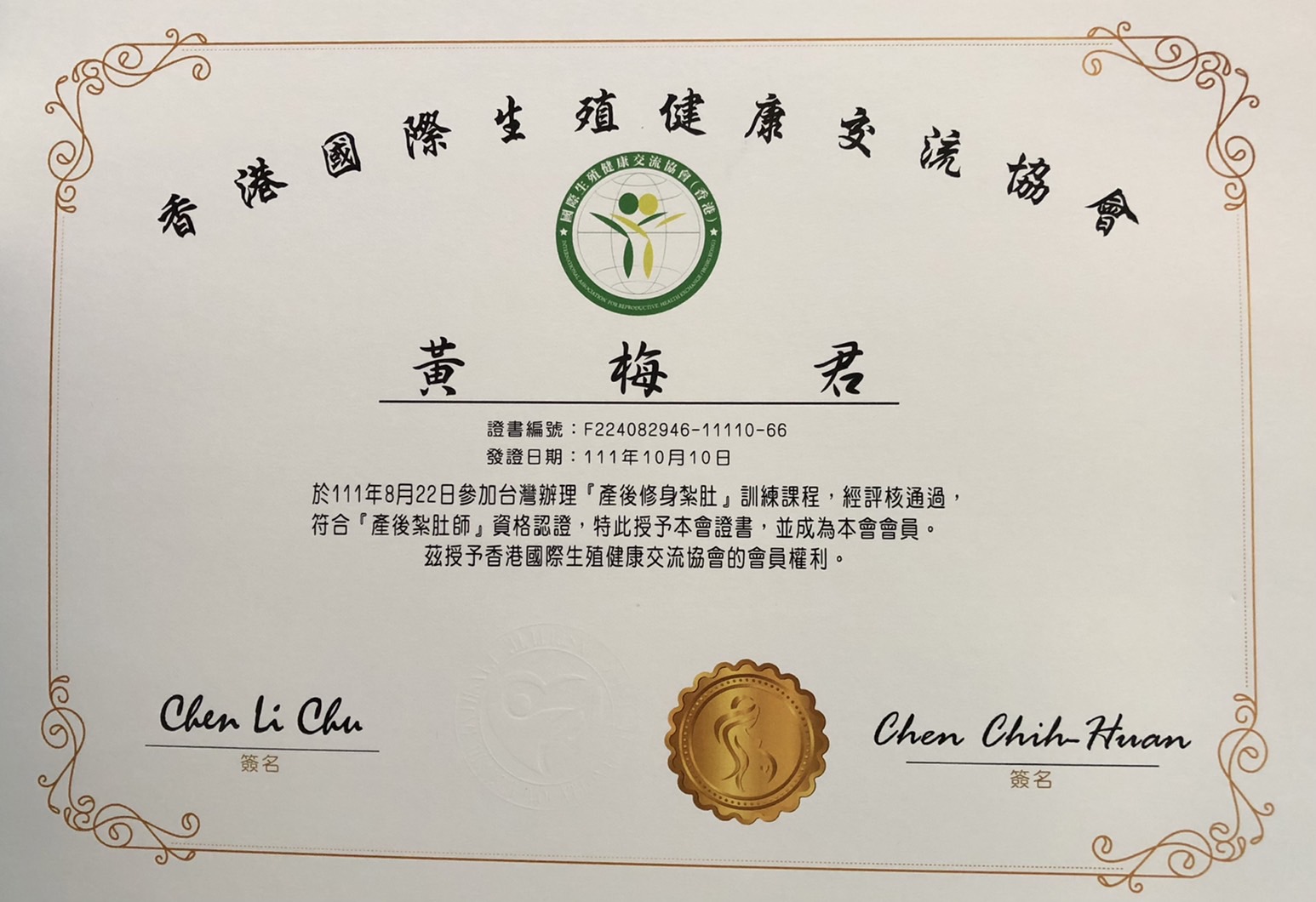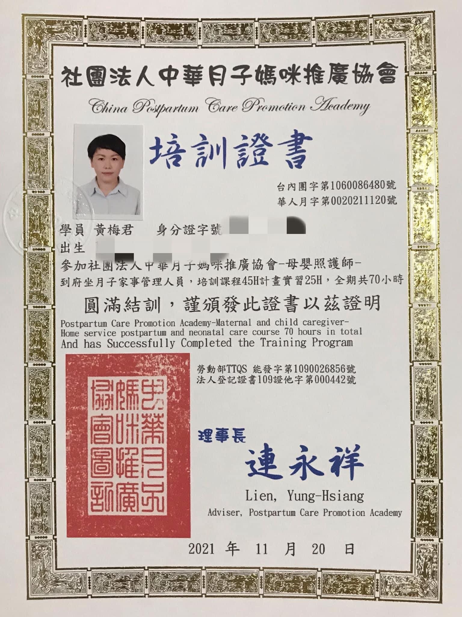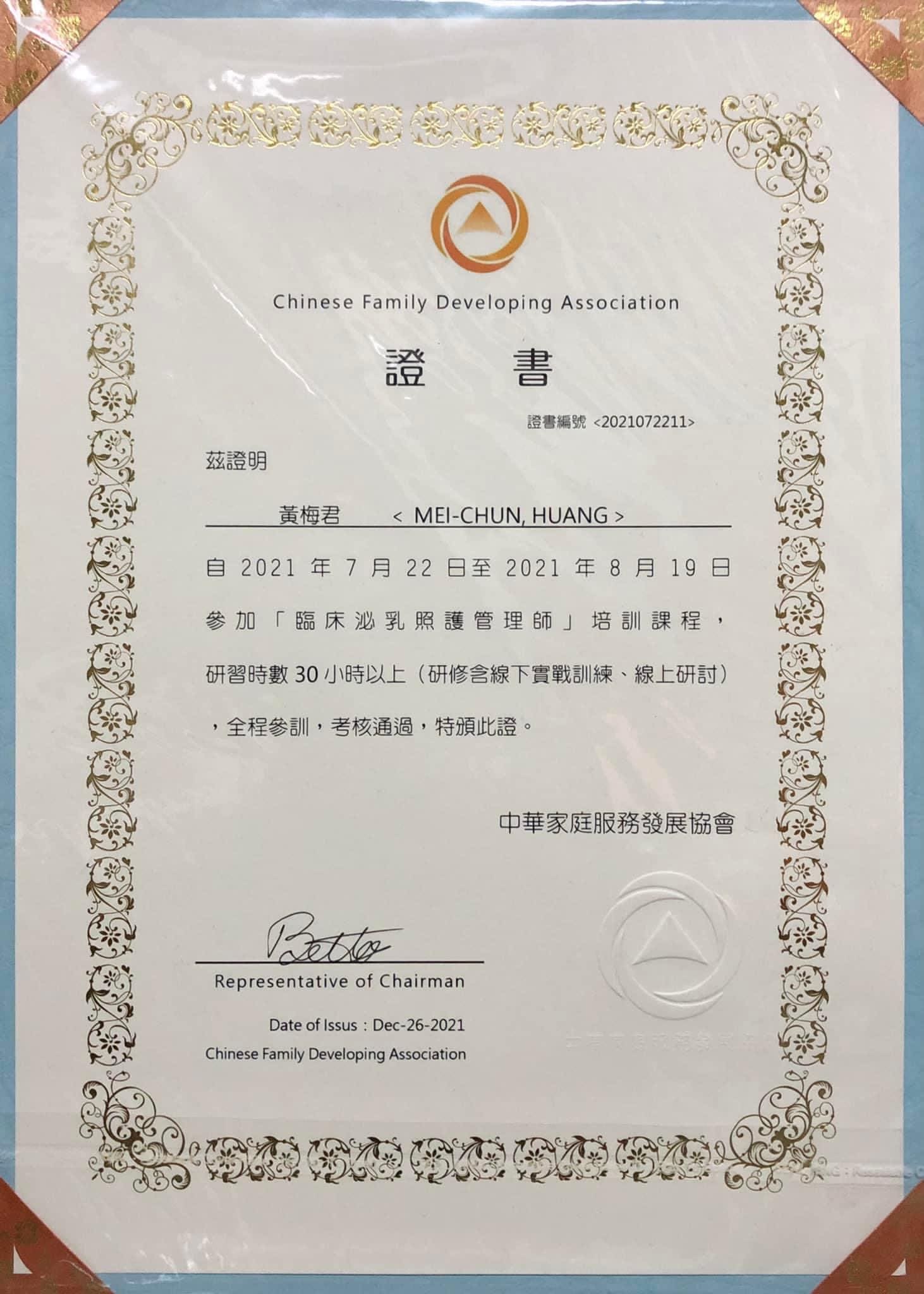 小梅是擁有「護理師證書」、「產後康復照護」及「國際CIP孕產婦芳香乳房照護師證照」的專業人員。